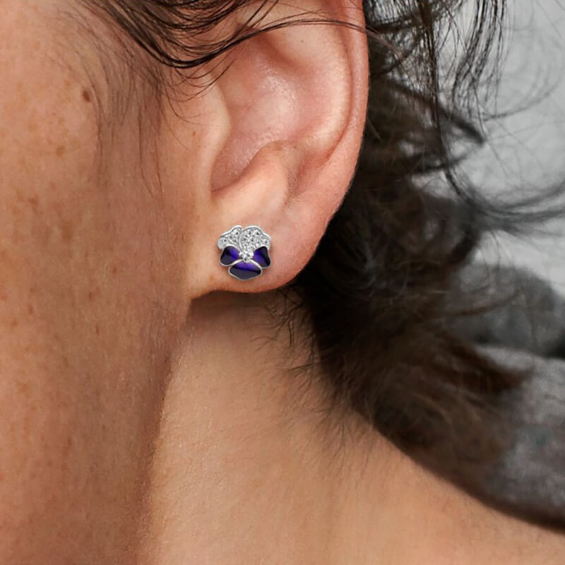 Aretes de Botón – Flor Prímula Violeta